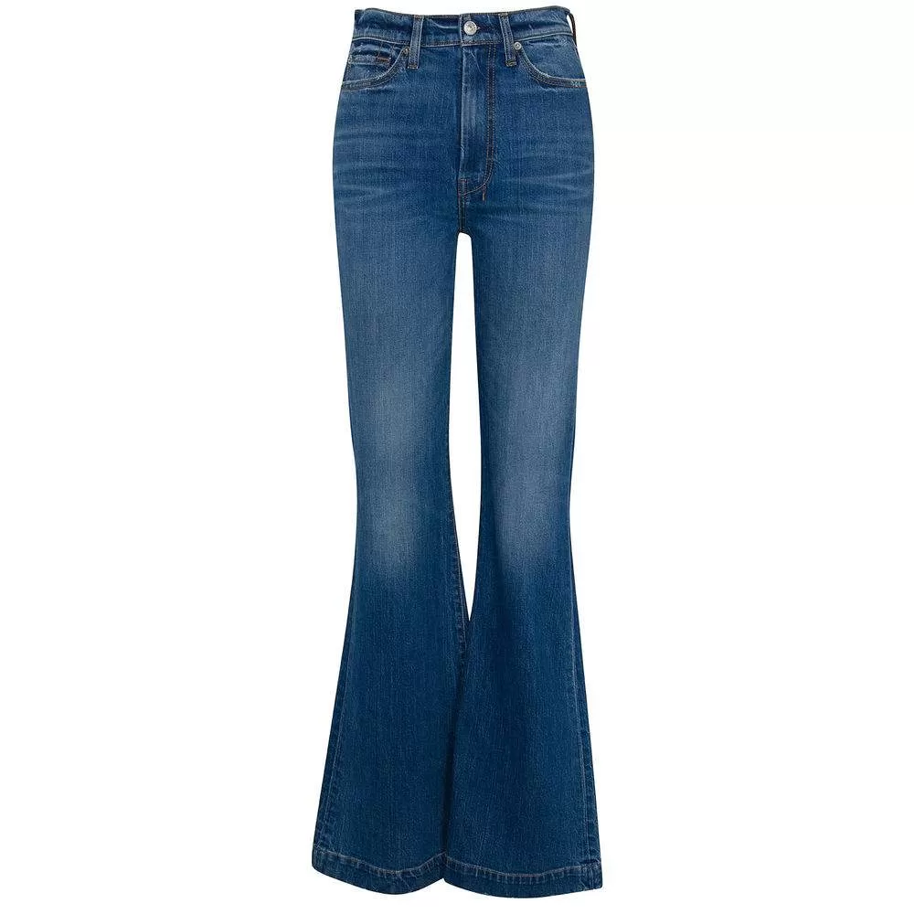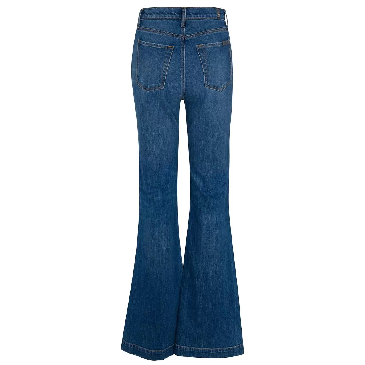 The coveted Dojo trouser jean, cut with an ultra high rise. Crafted from 7 For All Mankind’s signature Beauty denim made with collagen peptides for a cool-to-the-touch luxurious feel and live-in comfort stretch. A mid-blue wash is marked by whiskering and a brushed fade down the thigh.