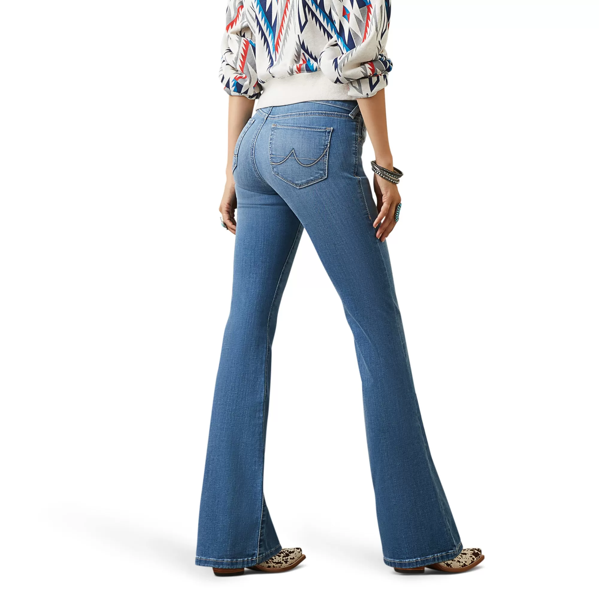 This jean flares below the knee for a fashion-forward look. Fitted through hip, thigh, and knee. Fabricated in UltraStretch denim that shapes to you. Perfect rise sits just below the waist.