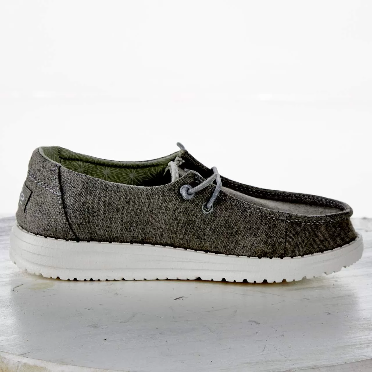This particular Chambray version of the Wendy collection introduces an iconic low top moc with soft chambray-cotton throughout. They are soft, breathable blend of cotton and canvas. This shoe is lined with a leather-lined insole for comfort while featuring the easy-on system with elastic laces and ultralight outsole.