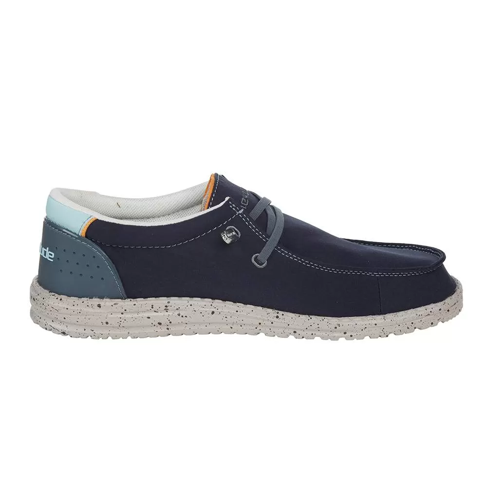 Classic moccasin construction in performance materials. The Wally ADV collection showcases a travel-ready moc, made with stretch nylon uppers that repels water and is flexible enough to fold for packing. Reinforced heel for stability, mesh lining throughout, and insole to keep things fresh. Featuring our thoughtfully designed Easy-On System with no-tie elastic laces and an ultralight outsole. Bring on any day with these dudes.
