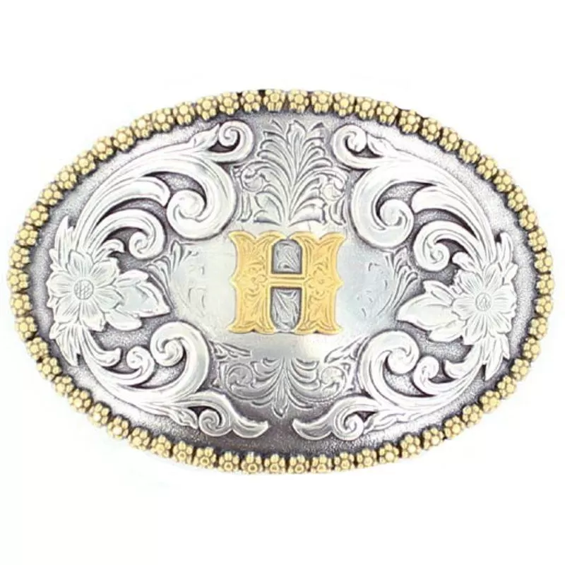 This belt buckle by M&F Western Products is made to make you look sharp! This is a very nice belt buckle that fits most size belts and has your traditional belt loop fastener that is easy to slide on and off. This buckle is made to shine up your outfit! Put this on your favorite leather belt and you will be ready to make your best impression. This M&F buckle is made with silver and is with detailed engraving that makes this buckle unique.