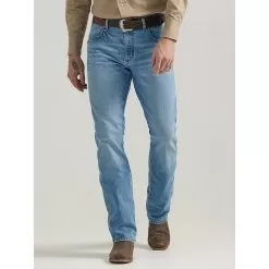 Wrangler Mens 77 Slim Boot Cut Light Wash Jean