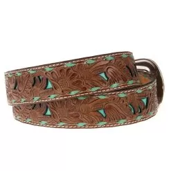 Ladies 1.5in. Belt With Turquoise Underlay And Buckstitch