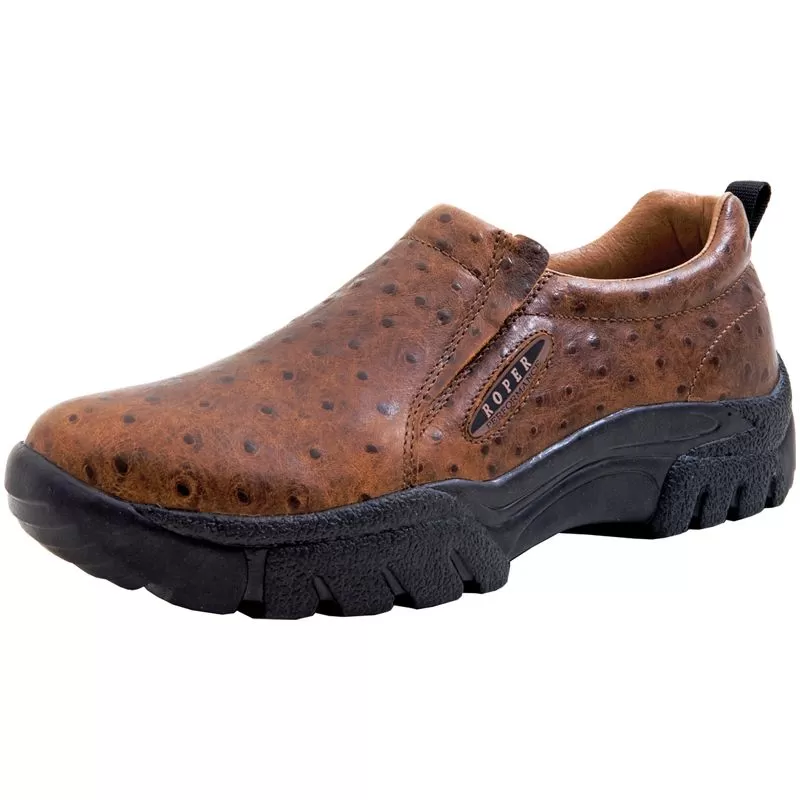 Roper Classic Vintage Ostrich Print Slip On. This men’s casual features a slip on style, ostrich print construction, rubber sole, and a comfort insole. “Go West.” This simple phrase captures a universal longing to leave behind the everyday and set out for parts unknown. 140 years ago John B. Stetson heeded that call and created the classic symbol of the west. Today the unbridled individuality of the American spirit continues to be Stetson‘s constant inspiration. &