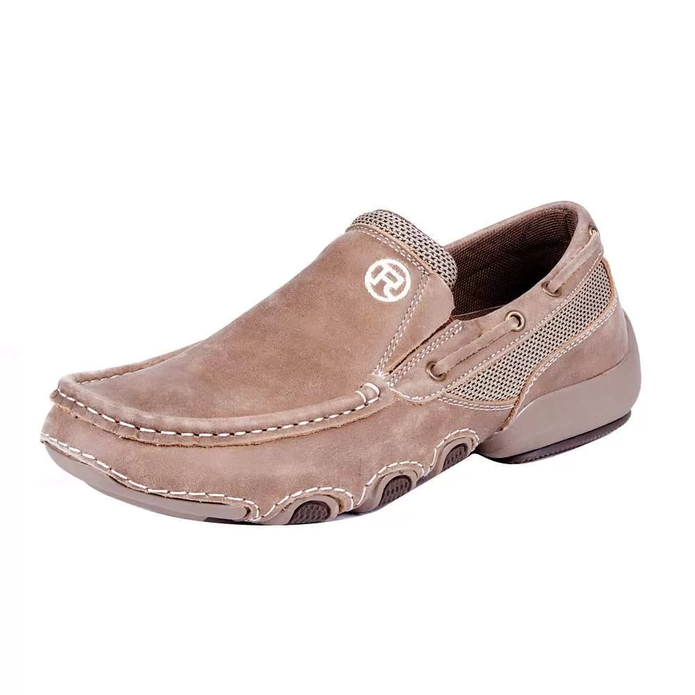 The Roper Skipper slip-on boat shoe is a great for fashion and comfort. It is constructed with brown vintage leather and has a high tech synthetic fabric.