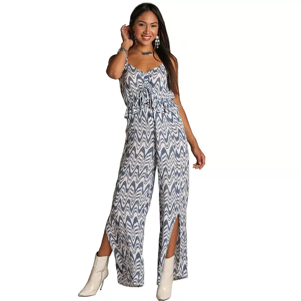 Women's Rock And Roll Denim Blue Print Jumpsuit