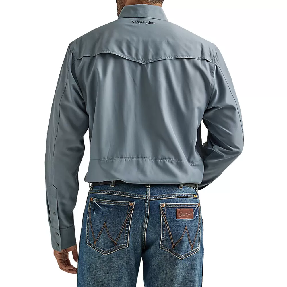 Take on the unexpected in one of our most dependable shirts. The Wrangler performance long-sleeve solid snap shirt comes with everything you need to take on the day, including UV protection from the sun’s harmful rays and a moisture-wicking finish to keep you feeling dry. This classic fit shirt is crafted for unparalleled performance and comfort, complete with a back vent for breathability. It also features that classic western styling you know and love, including pointed yokes and a full snap closure. You’ll have plenty of space for your essentials between the double chest pockets, a Napoleon-style pocket on the left chest pocket, a dedicated pencil slot, and a glasses cleaner at the hem. Wear this performance snap shirt with your favorite pair of Wrangler jeans or utility pants for a formidable outfit.
