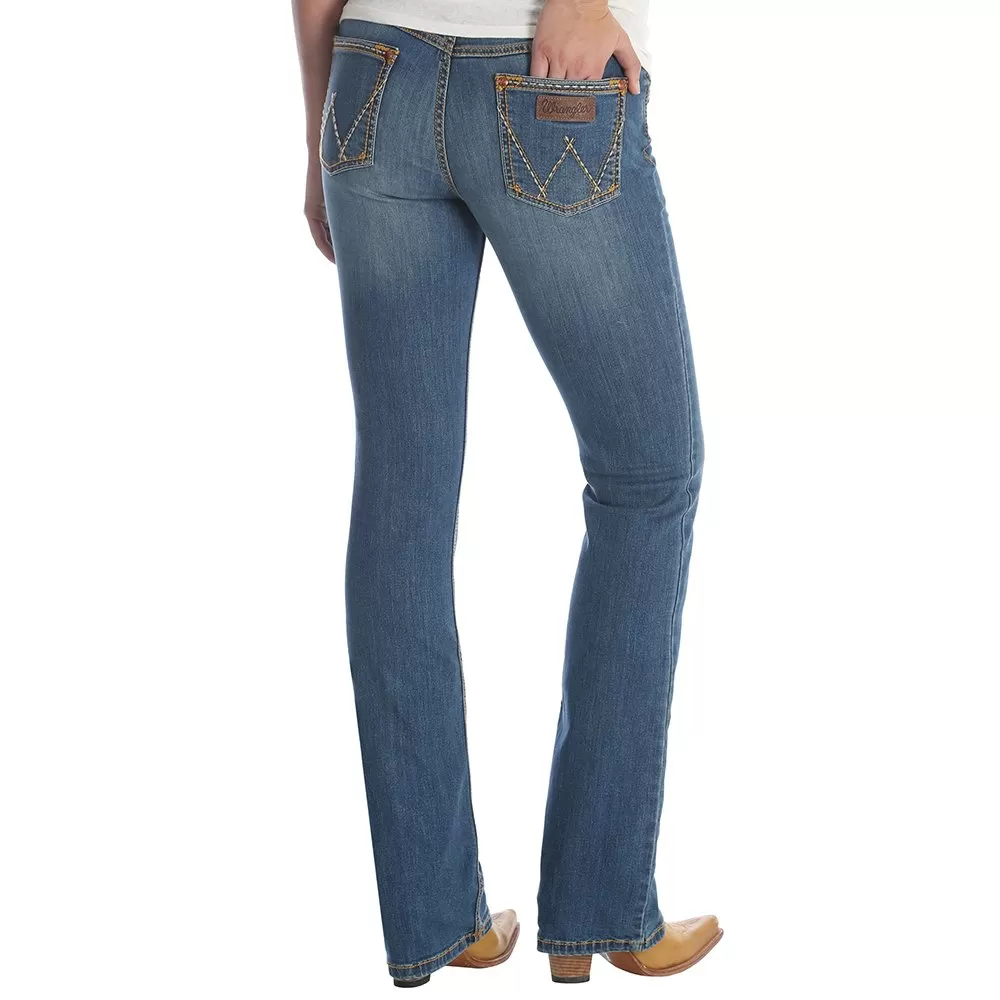 These women’s bootcut jeans come with a figure-flattering, mid-rise fit that is very versatile. They are offered in multiple lengths, have a zipper fly and have the authentic “W” stitching on the back pockets. They are a Wrangler jean you are sure to love!